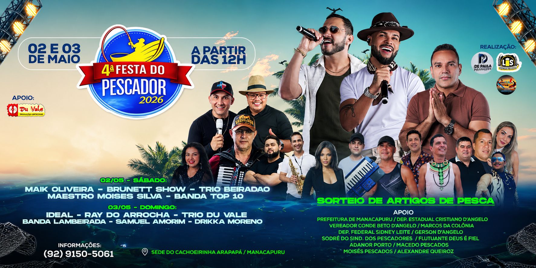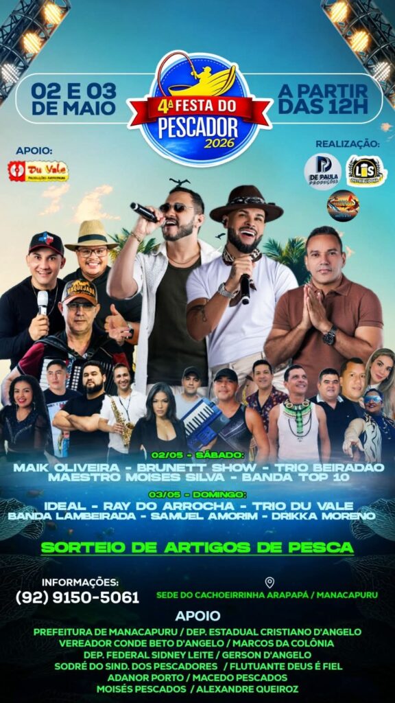 A comunidade do Arapapá, em Manacapuru, se prepara para receber um grande público durante a realização da 4ª Festa do Pescador, marcada para os dias 2 e 3 de maio. O evento, que já se consolida como uma das principais celebrações culturais da região, promete unir música, tradição e entretenimento a partir das 12h.
