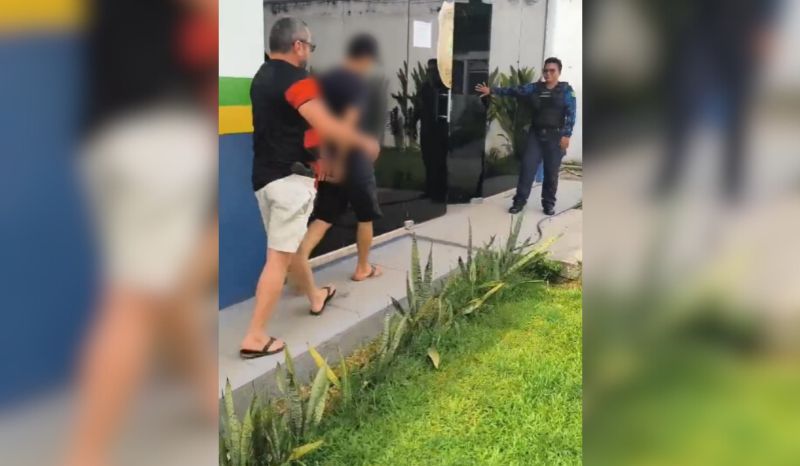 Segundo o delegado, diante do flagrante, foi dada voz de prisão ao suspeito, que foi encaminhado à delegacia para os procedimentos legais.