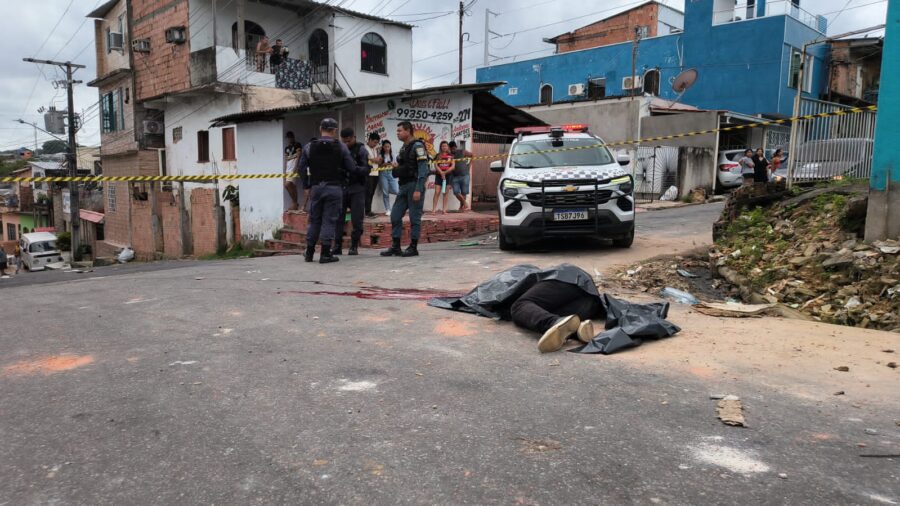 Um homem ainda não identificado foi morto com um tiro na cabeça na manhã desta sexta-feira (30), na rua Olavo Bilac, no bairro Compensa 2, Zona Oeste de Manaus. A vítima usava um capacete de motociclista no momento do crime.