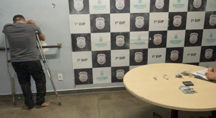 Suspeito de 31 anos, que usava muletas, foi flagrado vendendo entorpecentes e já tem passagens pela polícia