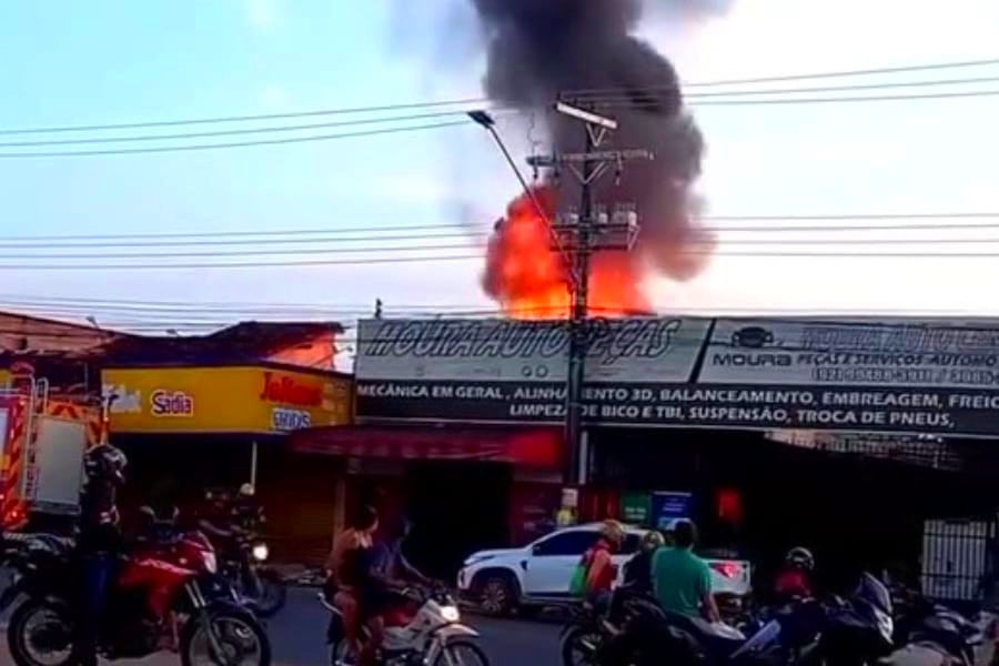 Uma oficina mecânica foi atingida por um incêndio de grandes proporções na manhã deste domingo (7), por volta das 6h, na Avenida João Câmara, no bairro Novo Aleixo, Zona Norte de Manaus. O fogo tomou rapidamente parte do estabelecimento conhecido como “Moura Autopeças”, com labaredas intensas que chegaram perigosamente próximas à fiação elétrica da área, elevando o risco de novos incidentes.