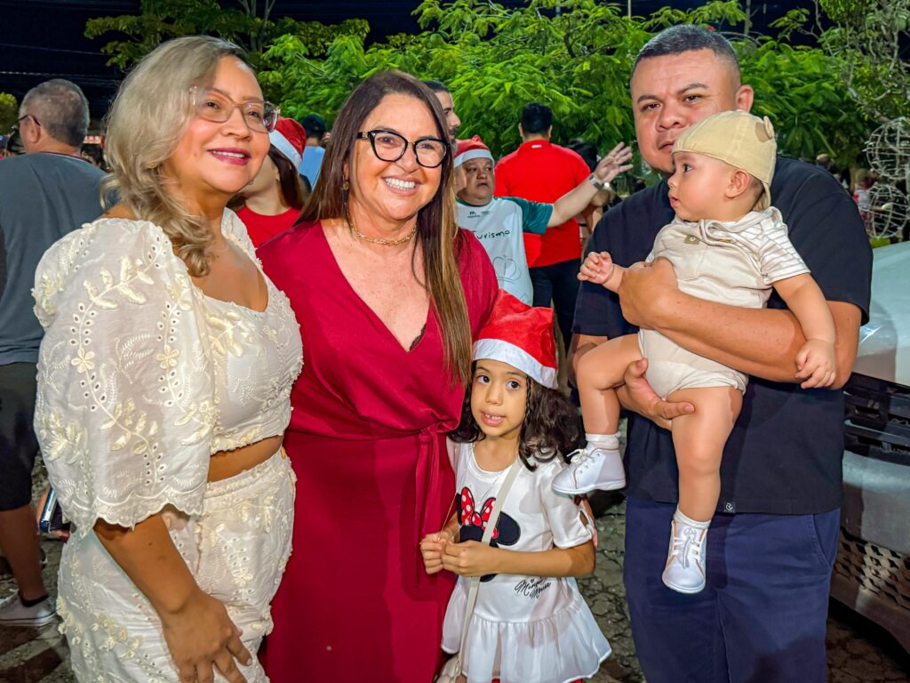 O evento contou com a presença da prefeita Valciléia Maciel, do deputado estadual Cristiano D’Ângelo, além de famílias e visitantes que acompanharam o espetáculo de luzes.