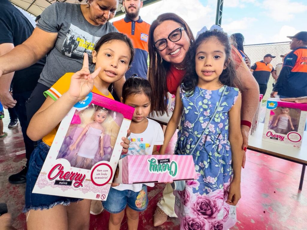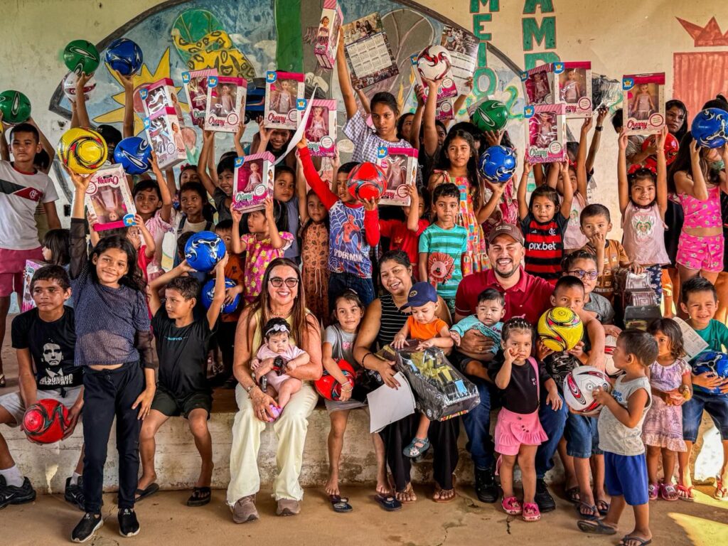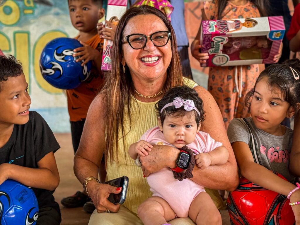 Natal que Transforma: Prefeita Valciléia Maciel leva sorrisos e brinquedos às crianças da Zona Rural de Manacapuru
