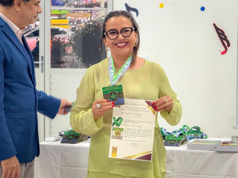 Na ocasião, ocorreu também a entrega da Medalha de Ouro Cidade de Manacapuru, honraria destinada a personalidades que contribuem para o desenvolvimento e valorização do município. Valciléia esteve entre os agraciados, ao lado do deputado estadual Cristiano D’Ângelo e de outros homenageados.